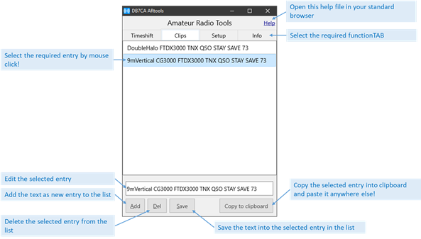 info, version and a link to the DB7CA Homepage!